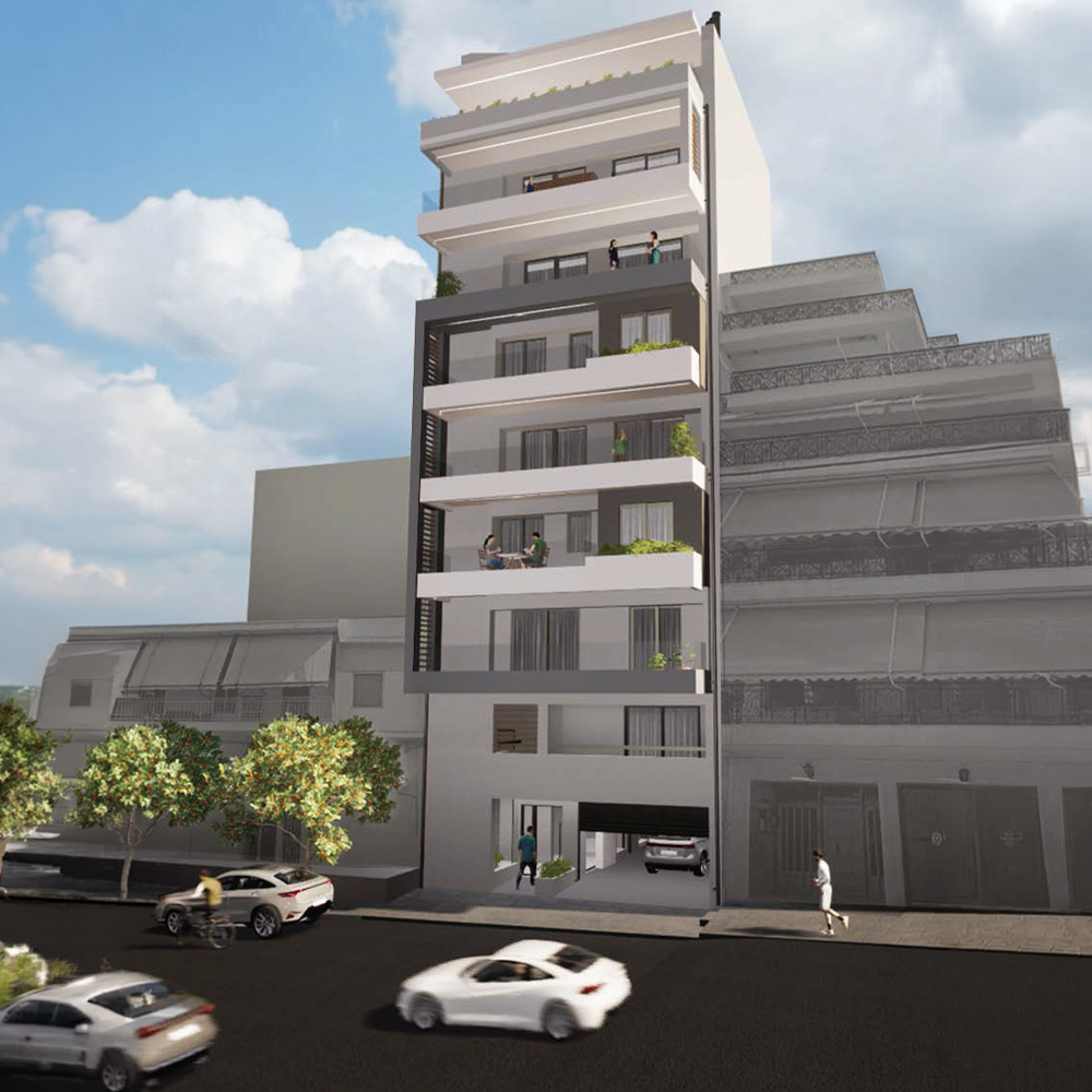 Πολυκατοικία υπό κατασκευή στην καλύτερη περιοχή της Πειραϊκής χερσονήσου, σε φαρδύ δρόμο (18μ πλάτους) σχετικά ήπιας κυκλοφορίας (δεν διέρχεται